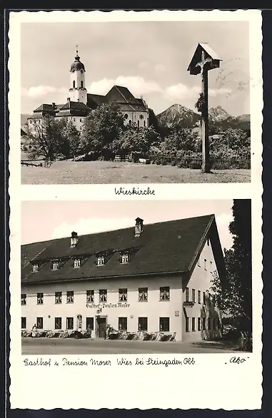AK Wies b. Steingaden, Gasthof und Pension Moser, Wieskirche