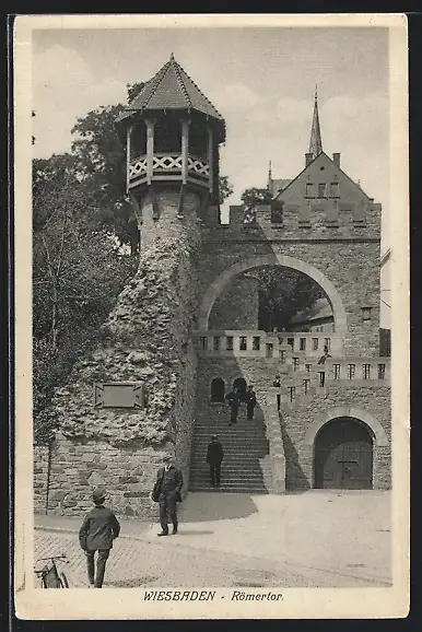 AK Wiesbaden, Besucher am Römertor