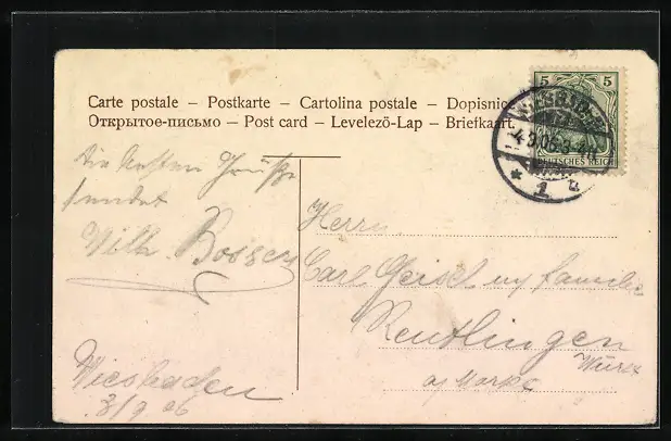gelaufen 1905, Eckschaden oben li., kleiner Einriss oben li., guter Zustand