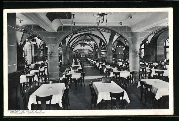AK Wiesbaden, Cafe Walhalla, Innenansicht