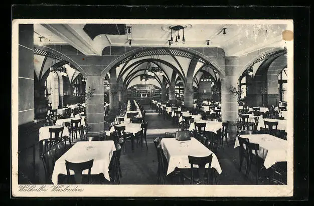 AK Wiesbaden, Gasthaus Walhalla, Innenansicht