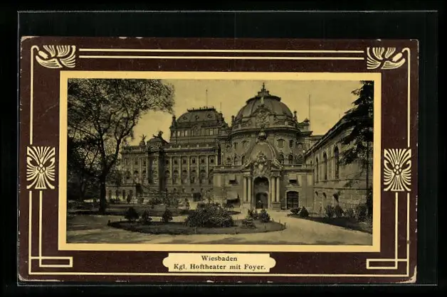 AK Wiesbaden, Kgl. Hoftheater mit Foyer