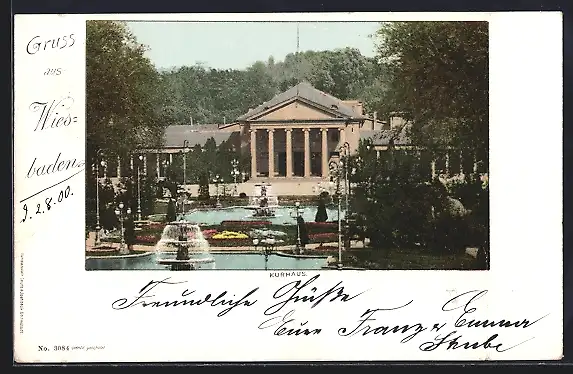 AK Wiesbaden, Kurhaus mit Springbrunnen