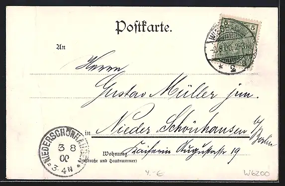 alte Ansichtskarte, gelaufen 1900, Bugspur re., guter Zustand
