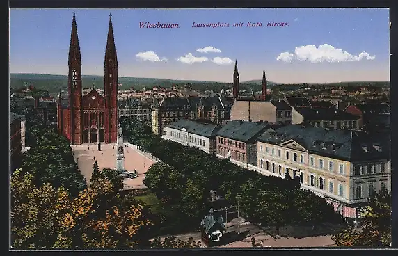 AK Wiesbaden, Luisenplatz mit Katholischer Kirche