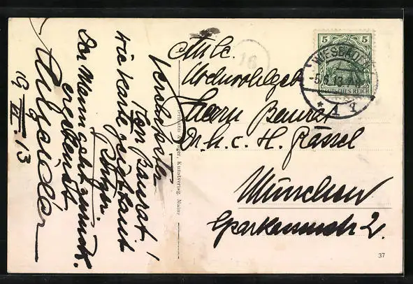 alte Ansichtskarte, gelaufen 1913, Stempelspur, guter Zustand