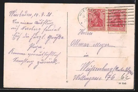 alte Ansichtskarte, gelaufen 1921, Eckknick unten re., guter Zustand