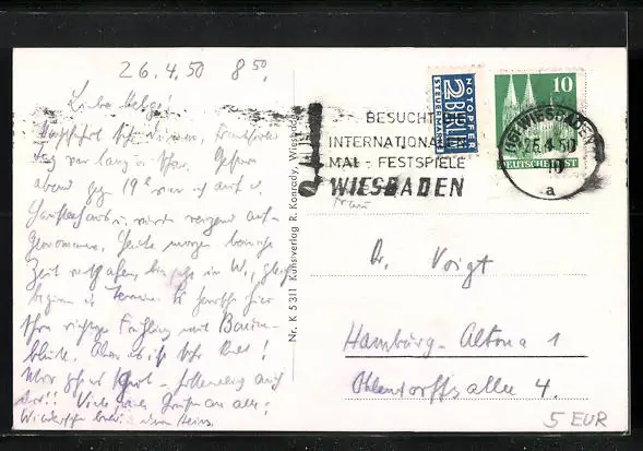alte Ansichtskarte, gelaufen 1950, guter Zustand