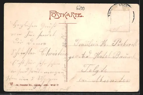 alte Ansichtskarte, gelaufen, Briefmarke entfernt, guter Zustand