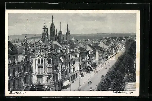AK Wiesbaden, Wilhelmstrasse aus der Vogelschau