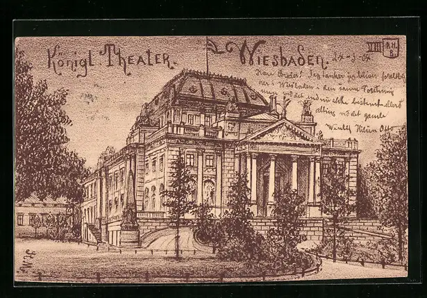 AK Wiesbaden, vor dem Königl. Theater