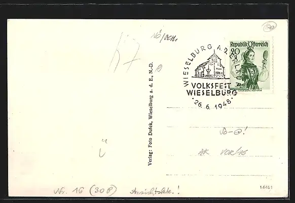 alte Ansichtskarte, ungelaufen, gestempelt 1948, guter Zustand