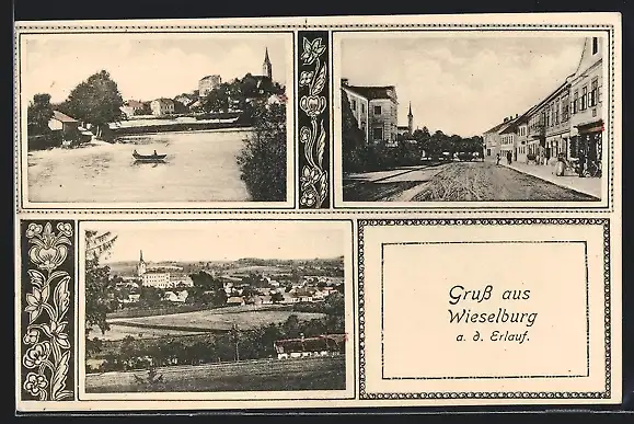 AK Wieselburg a. d. Erlauf, Strassenpartie, Ruderboot auf dem Wasser