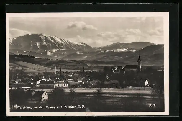 AK Wieselburg an der Erlauf, Ortsansicht mit Oetscher
