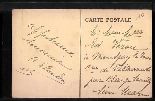 Personenbezogene Daten auf der Rückseite der Karte wurden durch blauen Textmarker unkenntlich gemacht. Die blauen Stellen sind auf die Vorderseite durchgeweicht und wirken sich negativ auf das Postkartenfoto aus