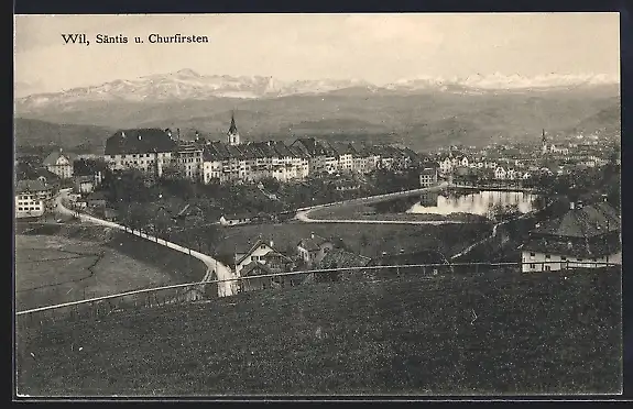 AK Wil, Teilansicht mit Säntis und Churfirsten