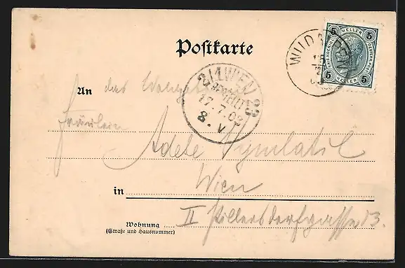 alte Ansichtskarte, gelaufen 1903, Stempelspur, guter Zustand