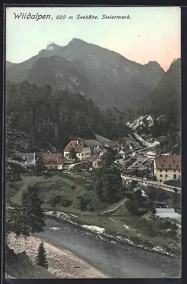AK Wildalpen, Ortsansicht mit Flusspartie
