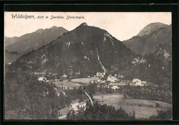 AK Wildalpen, Ortspartie aus der Vogelschau