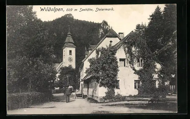 AK Wildalpen, Ortspartie mit Blick zur Kirche