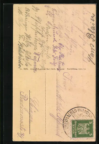 alte Ansichtskarte, gelaufen, Eckknicke li. unten u. re. oben, guter Zustand