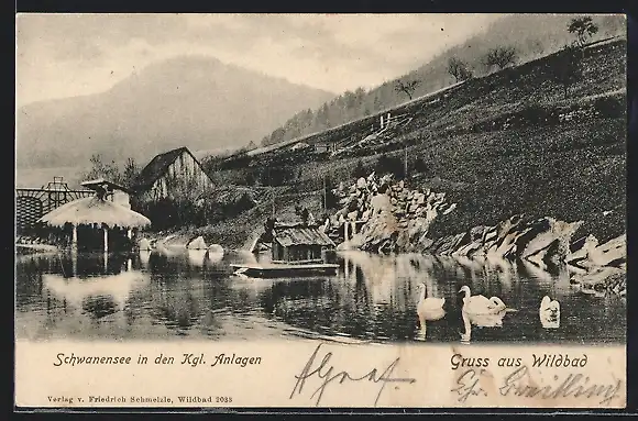 AK Wildbad / Enz, Schwanensee in den Kgl. Anlagen