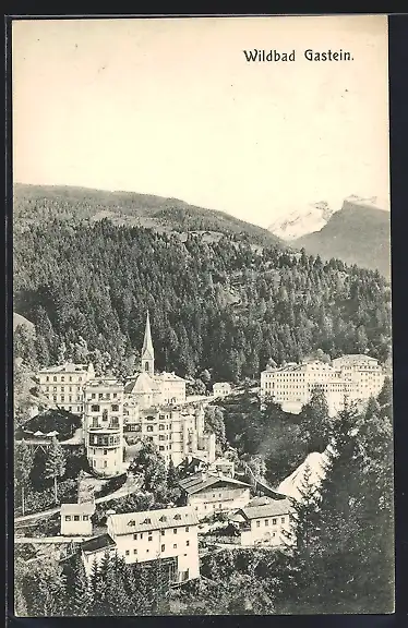 AK Wildbad Gastein, Teilansicht aus der Vogelschau