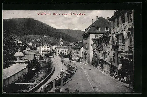 AK Wildbad, Häuser an der Olgastrasse, Trinkhalle