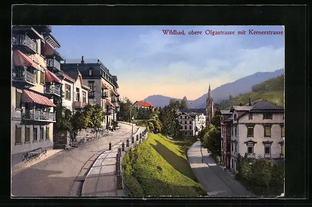 AK Wildbad, Obere Olgastrasse mit Kernerstrasse