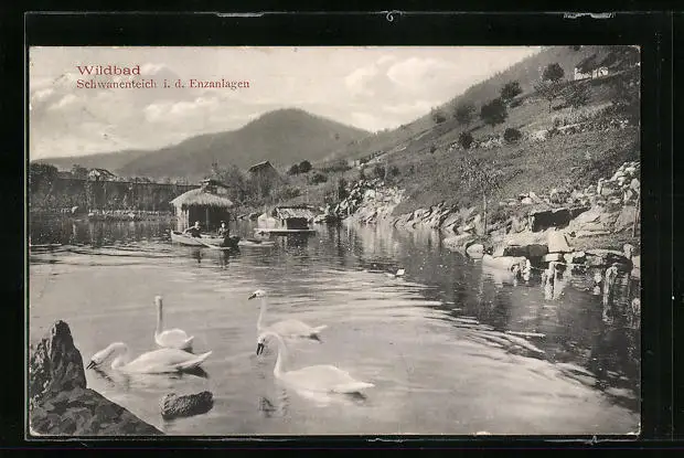 AK Wildbad, Schwanenteich i. d. Enzanlagen