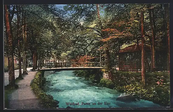 AK Wildbad / Schwarzwald, Partie an der Enz