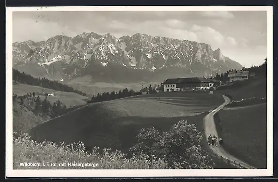 AK Wildbichl, Ortsansicht mit Kaisergebirge