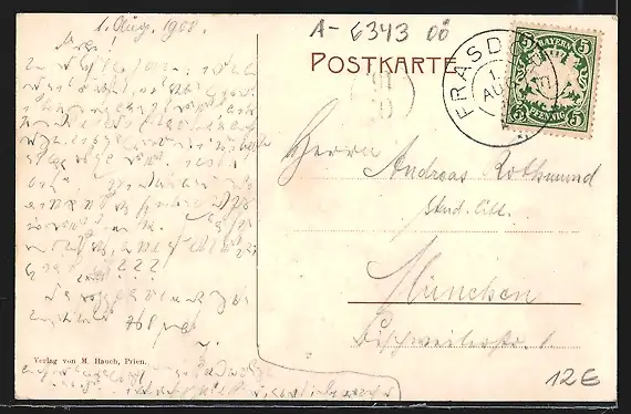 alte Ansichtskarte, gelaufen 1908, guter Zustand