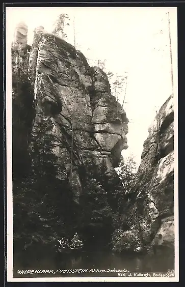 AK Wilde Klamm am Fuchsstein /Böhm. Schweiz, Ruderboot auf dem Wasser