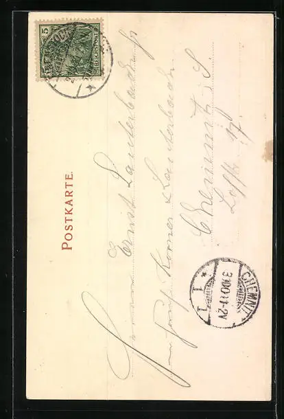 alte Ansichtskarte, gelaufen 1900, guter Zustand