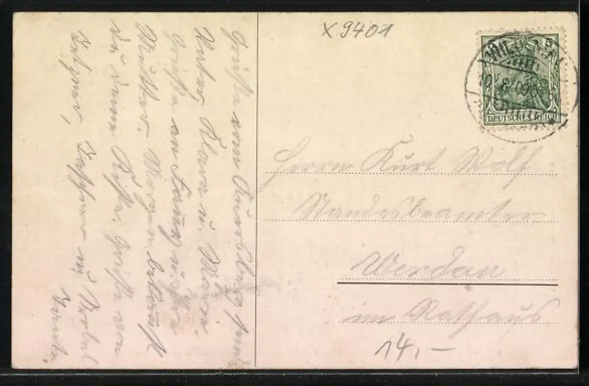 alte Ansichtskarte, gelaufen 1909, Eckknick unten re., guter Zustand
