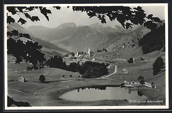 AK Wildhaus, Ortsansicht mit Schwimmbad