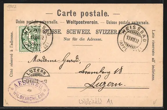 alte Ansichtskarte, gelaufen 1902, guter Zustand