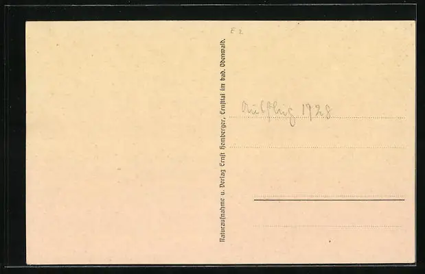 Personenbezogene Daten auf der Rückseite der Karte wurden durch blauen Textmarker unkenntlich gemacht. Die blauen Stellen sind auf die Vorderseite durchgeweicht und wirken sich negativ auf das Postkartenfoto aus