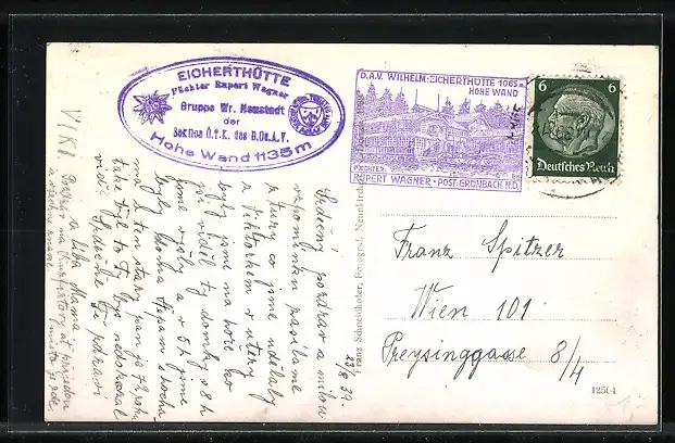 AK Wilhelm Eichert-Hütte, Berghütte auf der Hohen Wand