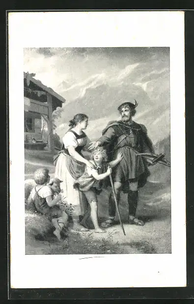 AK Wilhelm Tell beim Abschied von seiner Familie