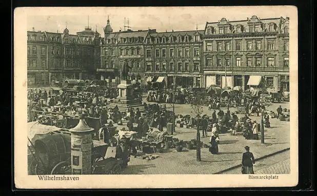 AK Wilhelmshaven, Bismarckplatz mit Passanten