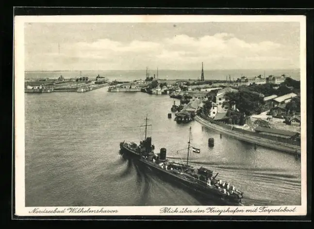 AK Wilhelmshaven, Blick über den Kriegshafen mit Torpedoboot