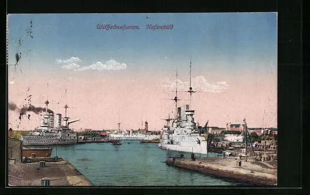 AK Wilhelmshaven, Hafenpartie mit Dampfer