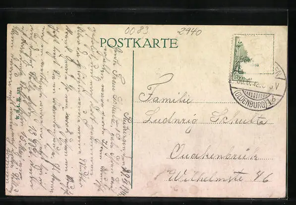 alte Ansichtskarte, gelaufen, Briefmarke entfernt, guter Zustand