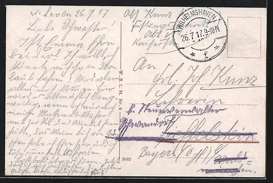 gelaufen 1917, Briefmarke entfernt, Eckknick oben re., guter Zustand