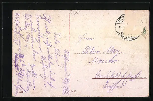 alte Ansichtskarte, gelaufen 1916, Briefmarke entfernt, rückseitig Oberflächenschaden, guter Zustand