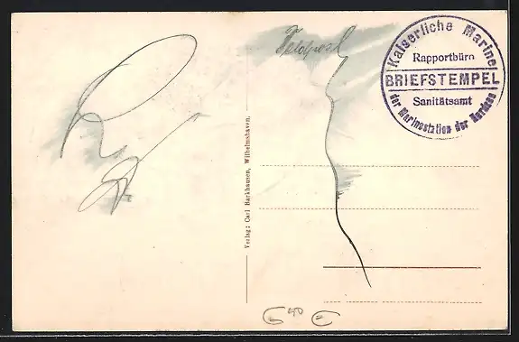 Personenbezogene Daten auf der Rückseite der Karte wurden durch blauen Textmarker unkenntlich gemacht. Die blauen Stellen sind auf die Vorderseite durchgeweicht und wirken sich negativ auf das Postkartenfoto aus