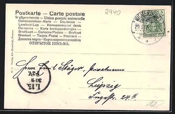 alte Ansichtskarte, gelaufen, Eckknick li. oben, guter Zustand