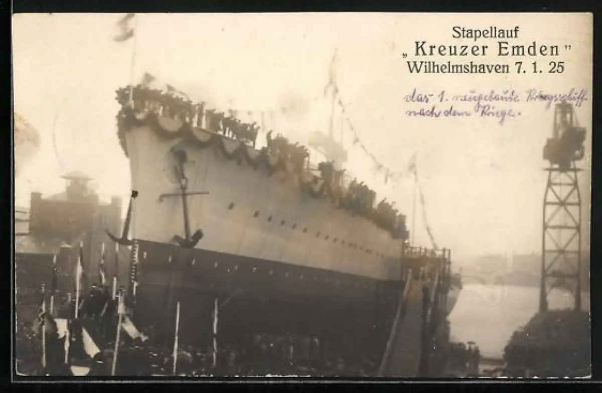 AK Wilhelmshaven, Stapellauf des Kreuzer Emden 1925